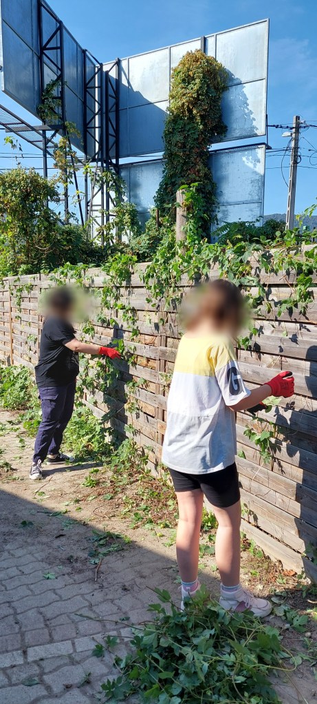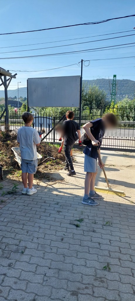 Csütörtökön a 7. osztállyal az iskola aranyvölgyi telkén voltunk. Az Újpest vasútállomáson találkoztunk és onnan indultunk 8:49-kor vonattal. A mi feledatunk volt a telek kitakarítása, mert a telek tele volt szeméttel és gazzal. Az osztály két részre oszlott: az egyik csapat a szemetet takarította, a másik fele pedig gyomlált és növényi hulladékot tett az osztály saját magságyásába, mert minden osztálynak lesz saját magaságyása.