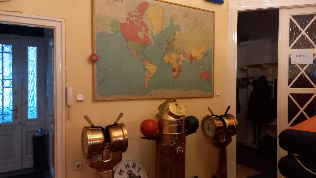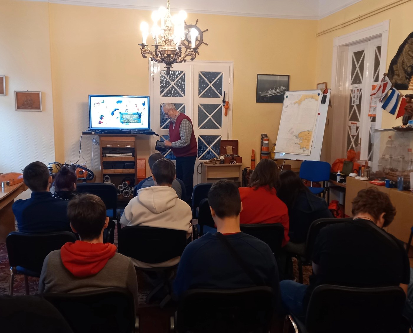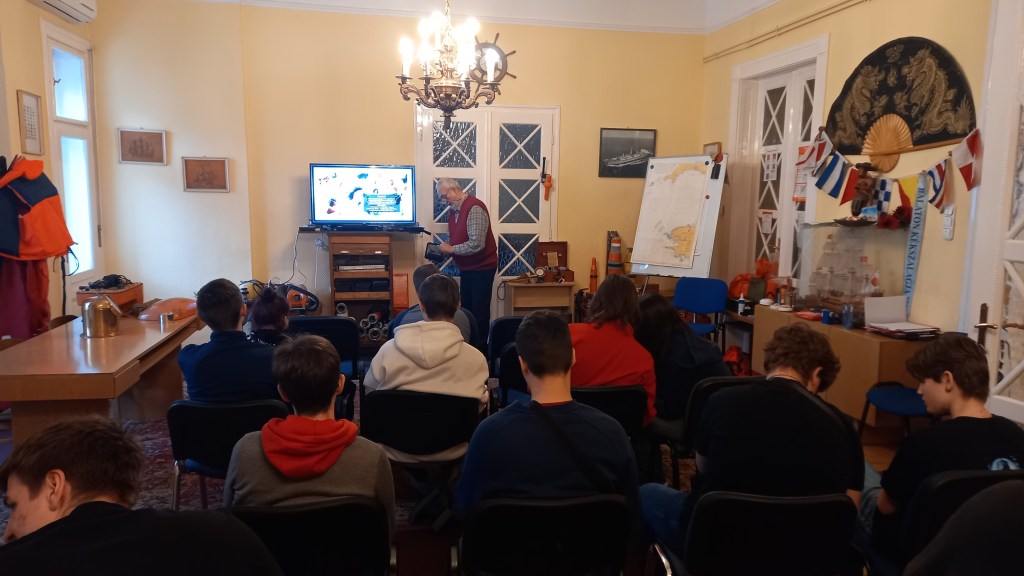 Múlt héten csütörtökön a 9. osztállyal elmentünk egy volt tengerész gépüzemvezetőhöz, Makk Gusztávhoz. A lakásában mindenféle hajókhoz köthető tárgyak voltak találhatóak, amiket meg is nézhettünk. A bácsi mesélt nekünk a hajókon zajló mindennapi életről, munkáról, ehhez meg is néztünk egy videót (magyarul és angolul). Beszélt még továbbá arról, hogy hogyan lehet túlélni egy mentőcsónakban. Ehhez is láthattunk egy videót, amit általában kezdő tengerészeknek vetítenek oktatás céljából. Megnézhettük többek közt a szárított ételt, zacskózott vizet meg persze a vízálló túlélési utasítást. Az egyik szobában egy mentőcsónak is fel volt állítva.