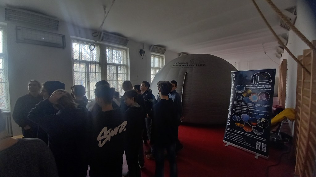 2024. február 22-én a Tüskevárba látogatott az Utazó Planetárium. Korcsoport szerint nagyjából 25 fős csoportokra lettünk osztva, és több turnusban mentünk be a meleg levegővel felfújt pici sátorba, ahol minden csoport több filmből választhatott egyet, amit meg akart nézni. Volt többek között 4D-s kisfilm a sötét anyagról, a bolygók közötti utazásról, a csillagokról, és még sok másról. Az én osztályom, a tizedik a sötét anyagot választotta, ami nem volt hosszú, de annál érdekesebb. Köszönjük az Utazó Planetáriumnak, hogy eljöttek hozzánk.