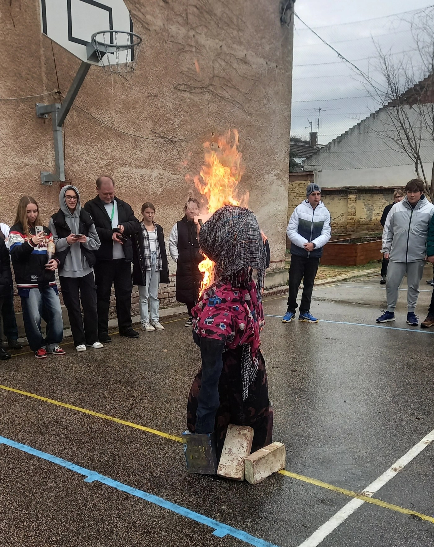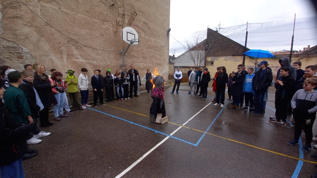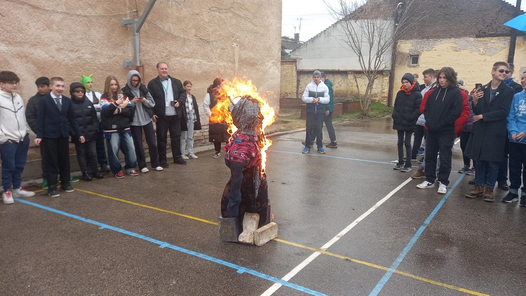 „A babona szerint a kiszebáb égetése megszabadítja az embereket minden bajtól. A téltemető népszokás igen kedvelt volt a falusi népek körében. Ma már csak elvétve találkozhatunk ezzel a szokással.” Többek közt az újpesti Tüskevár Iskolában találkozhatunk ezzel a hagyománnyal, amelyet tavaly vezettünk be. Farsang napján néhányan beöltöztek, a többieknek osztály szerint egy bizonyos színben kellett közösen megmutatkozniuk. Egész nap beöltözve vettünk részt az órákon, majd pedig a nap végén az udvaron elégettük a diákok által készített kiszebábot.