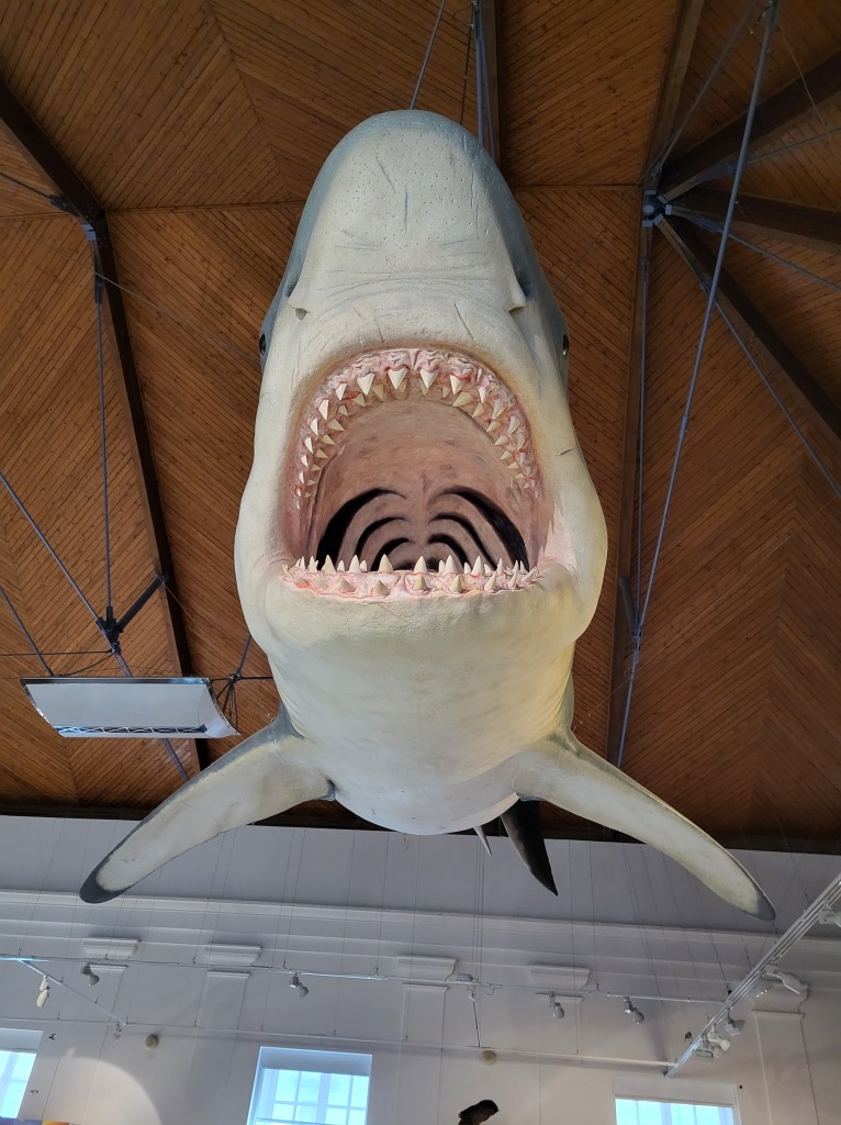 A felső szinten nagyon-nagyon sok szépséges ásvány volt kiállítva, illetve különböző állatok szobrait is láthattuk – például egy óriási Megalodon lógott a plafonról. Én bevallom, általánosságban nem vagyok különösen odáig a múzeumokért, de ez most engem is nagyon megfogott, és merem remélni, hogy valamilyen szinten az egész tizedik osztályt.